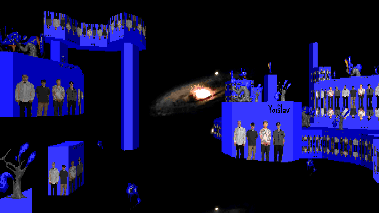 Wad file: >download<Yesterday I got an idea for something quick and silly to stay creative in spite of having to use my grandma's shitty tv as a monitor. I was gonna draw a bunch of characters made by the Doom community posing in the blue album cover. I was thinking of Plerb's mascot, Bank's Cacogirl, MundyC's Sanahaid and maybe Umbra's main character. Then I had the idea of using the drawing as a texture and making the kind of scene I did here with it. But when I shrunk and converted the album to Doom's palette it looked so goofy that I just wanted to use it on it's own. The spacey scenery was inspired by Baphomet's Satelite by Cacodemon187.